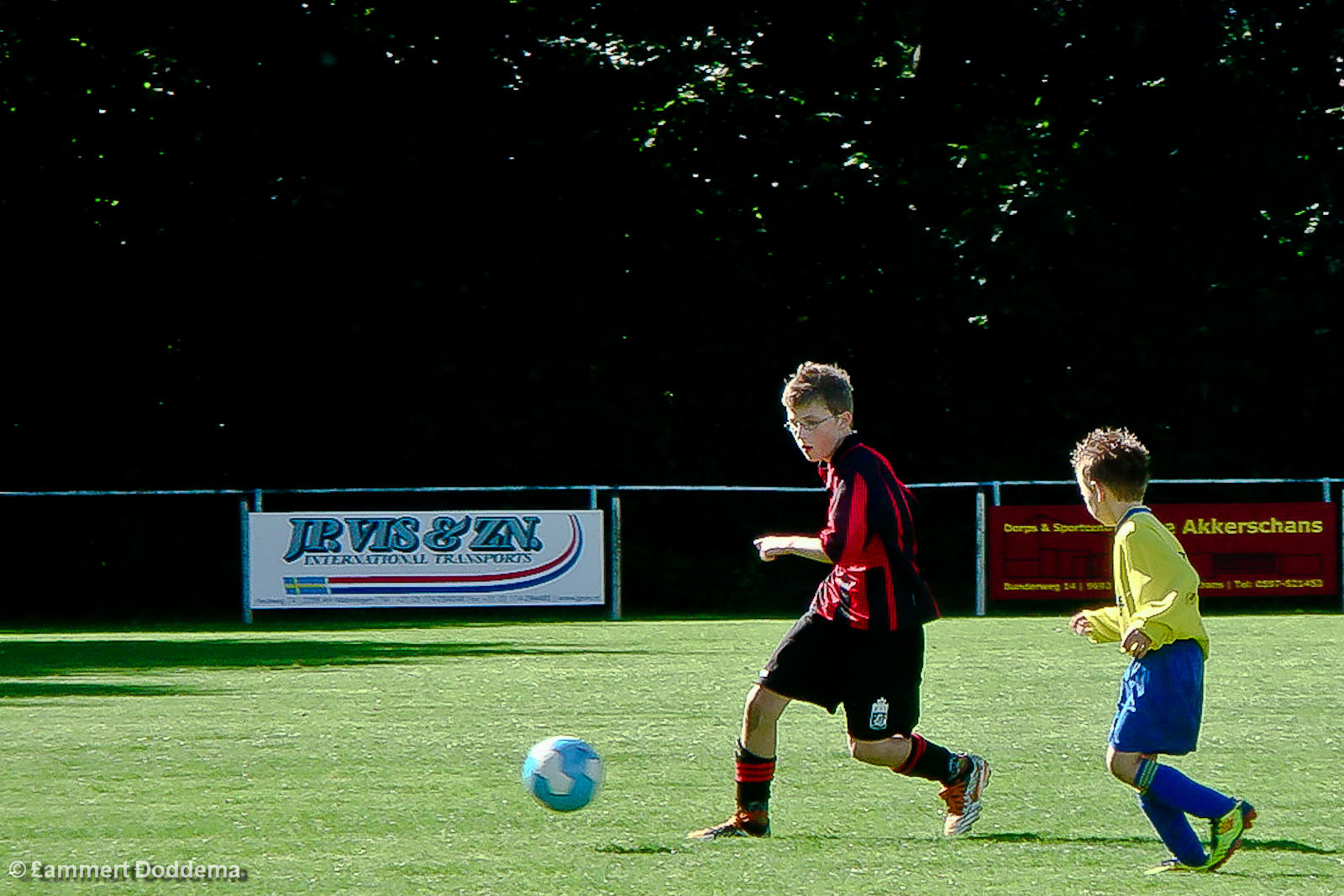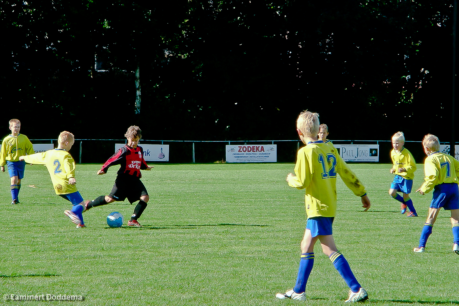 De 2e helft vloeiden de krachten bij Reiderland helemaal weg. E3 kreeg kans op kans en kwam heel snel op 2-3 door Daan. Het leek een hele grote uitslag te gaan worden. Maar zo ineens was het weer 3-3. De verdediging van E3 stond niet op te letten en de snelle spits van Reiderland kon zo op Julian aflopen en de bal langs hem in het doel schuiven: 3-3. E3 kwam vervolgens weer heel snel op 3-4 door Dylan.