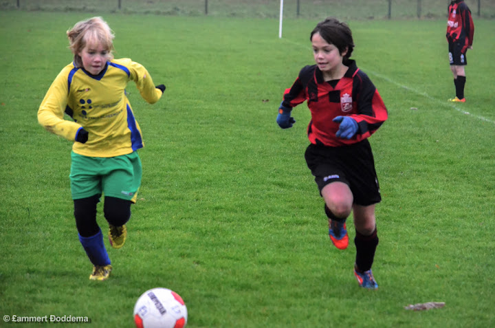 Wij daarentegen scoren ook nog een keer door een nette schuiver van Niek. Eindstand derhalve 8-4. Al met al natte voeten, zowel in de uitslag als letterlijk op het veld. Waarschijnlijk was dit de laatste wedstrijd van onze najaarsreeks. Helaas hebben we slechts 8 wedstrijden kunnen spelen van de 10. Met afwisselde resultaten hebben we toch de indruk alle spelers weer iets te hebben bijgebracht over het voetbalspelletje.